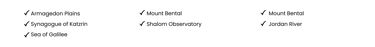 Embark on a captivating journey with our Golan Heights Tour, venturing north through the Plain of Armageddon and beyond Megiddo into the picturesque region of Galilee. Galilee greets us with its enchanting landscape of rolling hills, verdant farmlands, lush vineyards, and the serene Sea of Galilee. Crossing the Jordan River, we ascend into the Golan Heights, surrounded by lush countryside. Along the way, we encounter Hamat Gader, renowned for its ancient hot springs frequented by Romans and modern spa enthusiasts alike. Our ascent leads us to the Shalom Observatory, offering breathtaking panoramic views extending all the way to the Sea of Galilee. In Katzrin, we explore an excavated Jewish village dating back to the Mishnah and Talmudic eras. Our journey continues to Mt. Bental, where we delve into the remnants of Syrian bunkers and trenches, a poignant reminder of the historic events of the 1967 Six-Day War captured by Israeli forces.